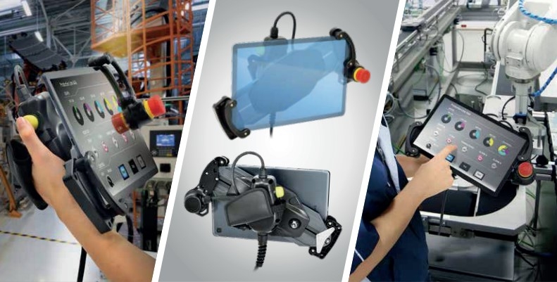 Umožňuje použití tabletu přímo ve výrobě. Díky kombinaci pevného držáku, třípolohového spínače a nouzového tlačítka lze použít tablet s držákem Safety Commander při jakékoliv aplikaci v průmyslu, výrobě a logistice.
