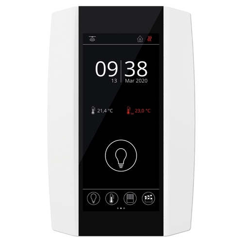 Díky 4,8“ dotykovému displeji s vysokým rozlišením a elegantní skleněné ploše je NOVOS Touch vrcholem mezi novými řídicími jednotkami pro ovládání místnosti.