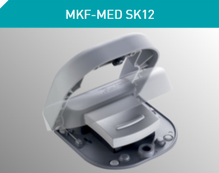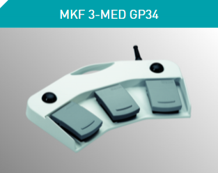 Příkladem je řada MKF-MED GP 26. Mezi vlastnosti tohoto dvoupedálového nožního ovládání patří mimořádně robustní hliníková konzola. Přepínač lze ovládat intuitivně, přičemž noha chirurga spočívá vlevo nebo vpravo od ovladače. Dělící přepážky na obou stranách zabraňují nechtěnému ovládání a slouží k orientaci, takže se chirurg může plně soustředit na pacienta. Výrobce zdravotnického přístroje si může jako další možnost zvolit přídavné ovladače pro další funkce. Tato řada spínačů přenáší digitální i analogové signály a je k dispozici v krytí až do IP X8. Kromě toho řada kabelových nožních ovladačů steute Meditec zahrnuje také - abychom uvedli jen jeden další příklad - vícepedálová uživatelská rozhraní a nožní ovladače pro laserovou medicínu. |