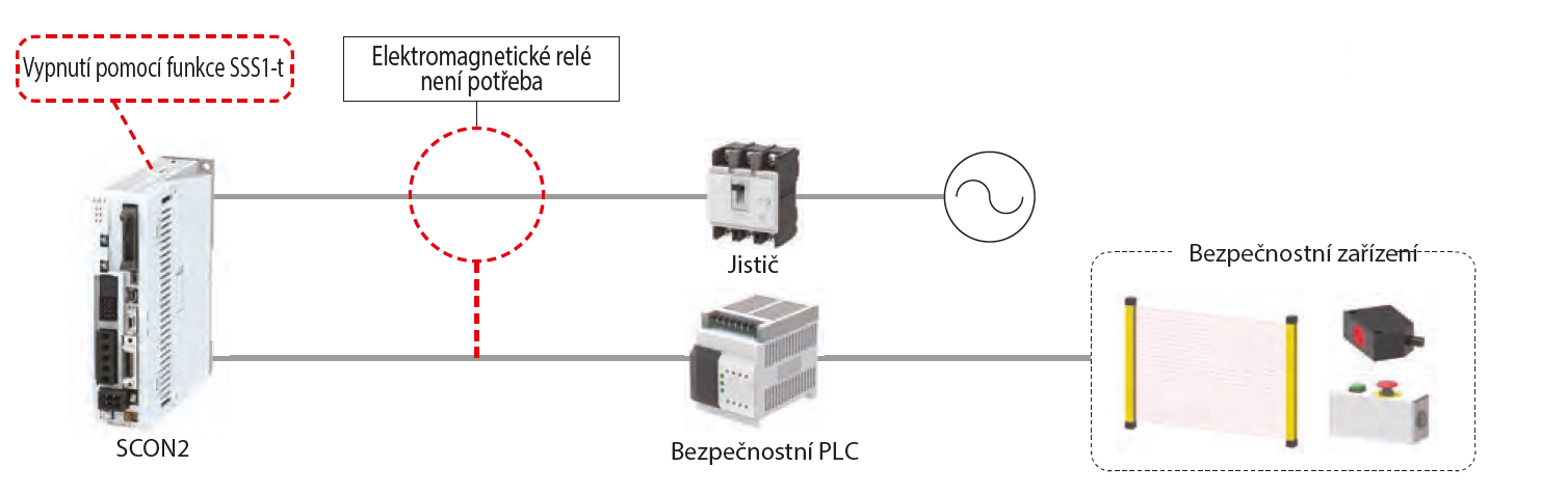 Řídicí systém SCON2 je standardně vybaven funkcí SS1-t