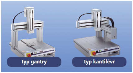 - gantry - systém je vhodný pro větší tuhost, díky stabilitě je možné pracovat na ose Z s většími zatíženími a zátěž je i lépe fixovaná