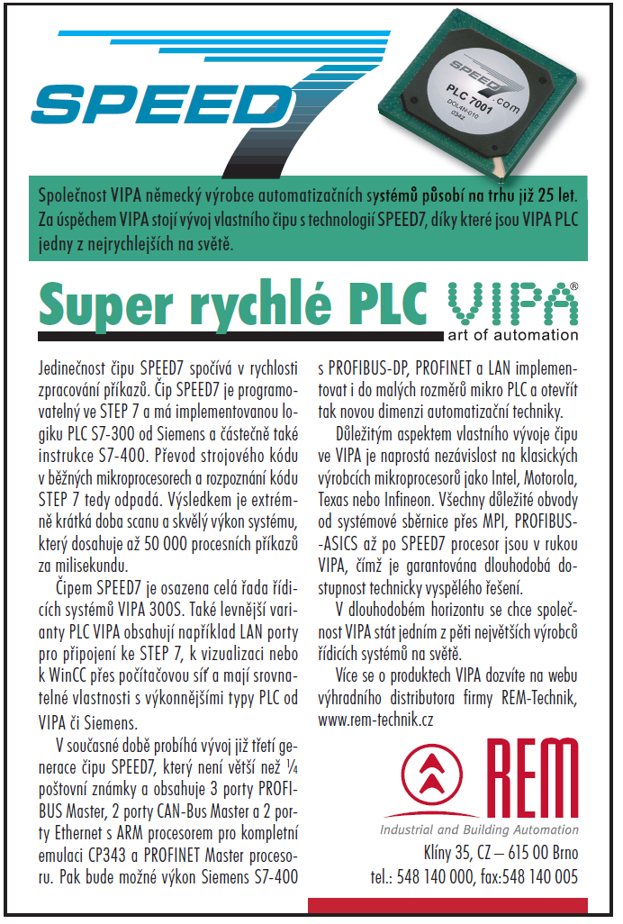 Společnost VIPA německý výrobce automatizačních systémů působí na trhu již 25 let. Za úspěchem VIPA stojí vývoj vlastního čipu s technologií SPEED7, díky které jsou VIPA PLC jedny z nejrychlejších na světě.