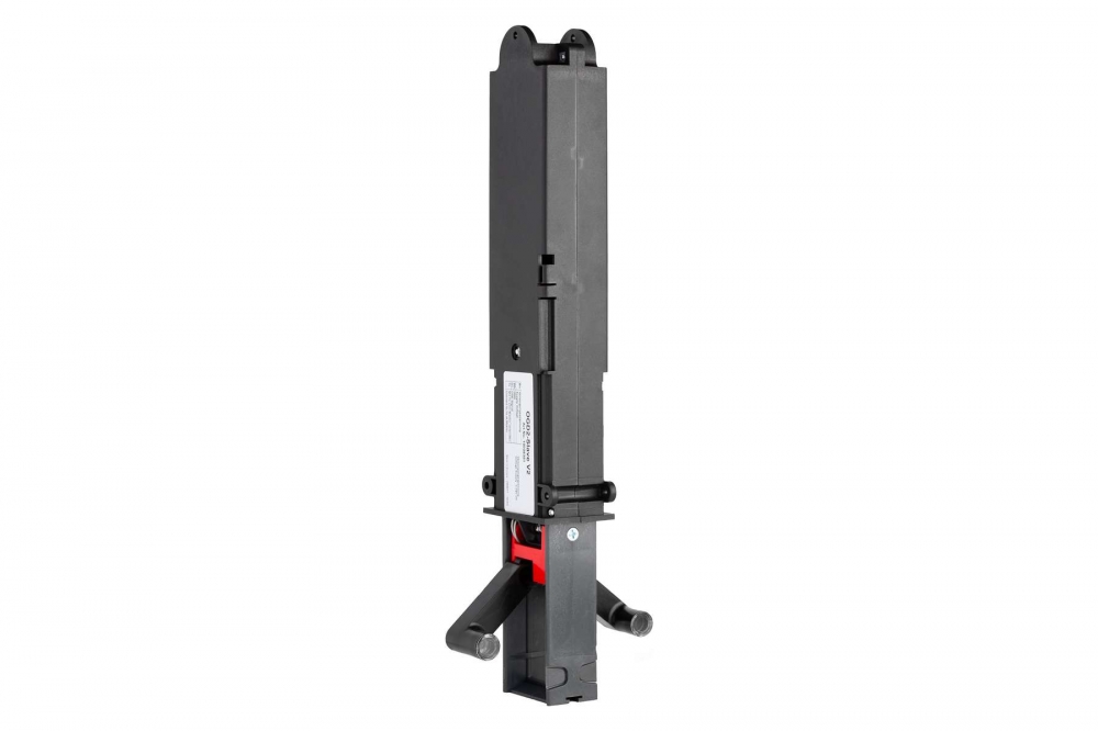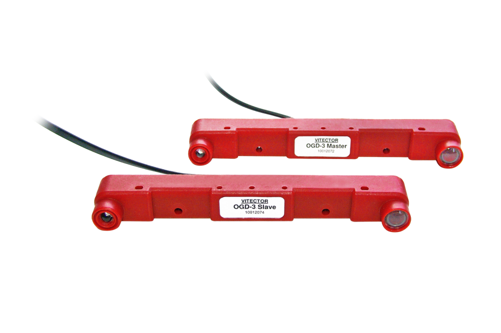 Předjížděcí světelná závora OPTOGUARD je vybavena dvěma teleskopickými saněmi, z nichž každá nese dvojici fotobuněk. Při dotyku se zemí se sáně zasunou do plastového pouzdra a napnou pružinu. Tvar pouzdra nutí ramena snímače, aby se při zasouvání otáčela o 60° a nakonec je umístila v paralelním vyrovnání.