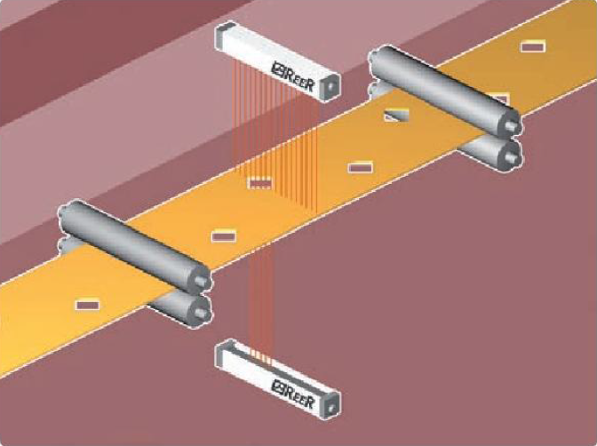 | Měření výšky objektů na dopravníkových pásech | Kontrola kvality: přitomnost/absence děr |