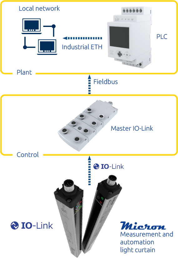 IO-Link je sériový komunikační protokol typu „point-to-point“ založený na otevřeném standardu. Umožňuje obousměrnou výměnu dat mezi senzory (jako Micron MI IOL) a IO-Link Master.